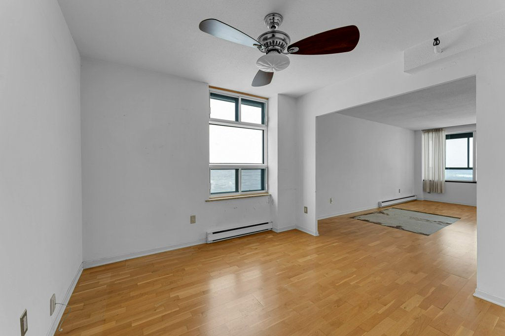 The galley-style kitchen is functional and efficient, connecting seamlessly to the main living area. Storage is a standout feature in this unit, with plenty of closet space throughout as well as a large, dedicated storage room. One of the highlights of the home is the expansive enclosed balcony, surrounded by screened in windows that allow you to fully enjoy the fresh lake air and unobstructed views of Lake Ontario.