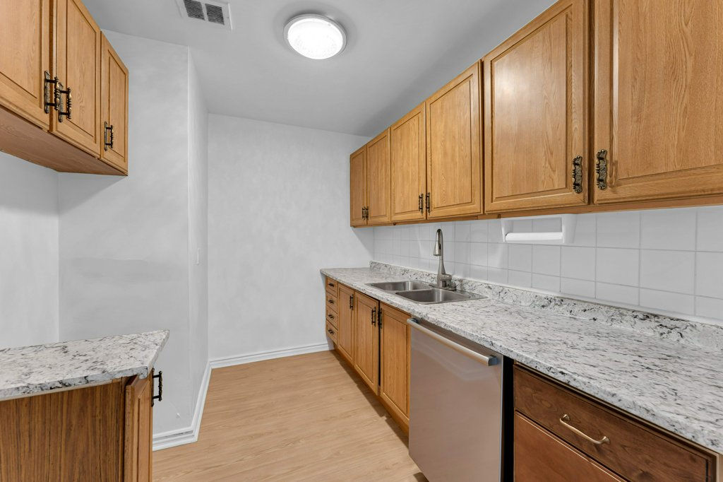 This freshly painted 1-bedroom, 1-bathroom suite with deeded parking offers 749 sq ft of bright, comfortable living space, featuring new luxury vinyl plank flooring throughout the foyer, kitchen, living/dining area, and the spacious primary bedroom.