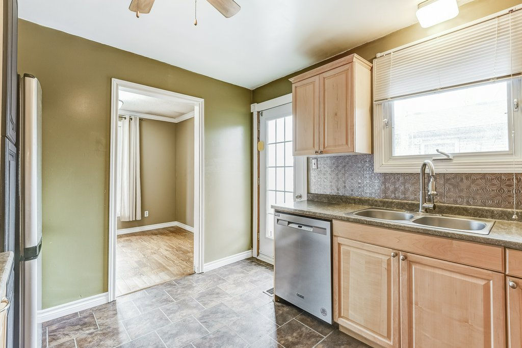 The home features four comfortable bedrooms and two bathrooms. The main floor bath is conveniently accessible from both the primary bedroom suite and the hallway, making it ideal for family living or guests. A spacious kitchen, with easy access from the side entrance, is perfect for everyday meals and entertaining.