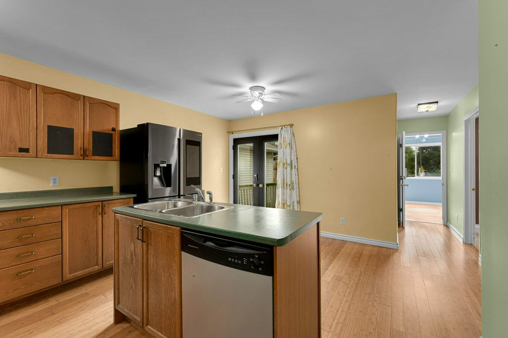 Inside, the main level offers three spacious bedrooms and a 4-piece bathroom, including a primary bedroom with double closets. The open concept living and dining area is filled with natural light, creating a bright and airy atmosphere. The adjoining kitchen features wood cabinetry, a central island with sink and dishwasher, and a breakfast nook that opens onto a private backyard retreat.